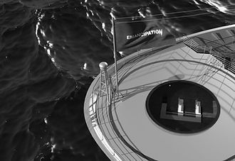 Image: Xuan Ye, The Spectacles Before Us Were Indeed Sublime (animation still), 2018. Two-channel 4K video (black-and-white, stereo) and galvanized plano-concave structure. Courtesy of the artist.
